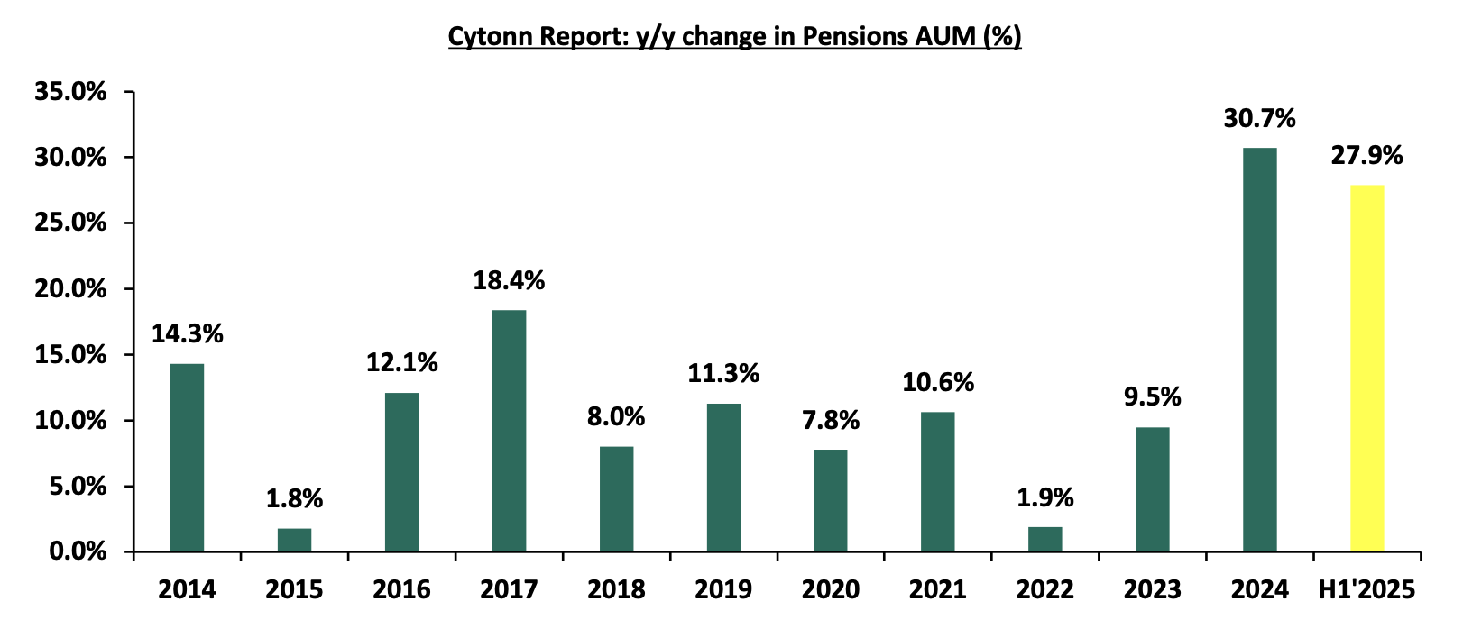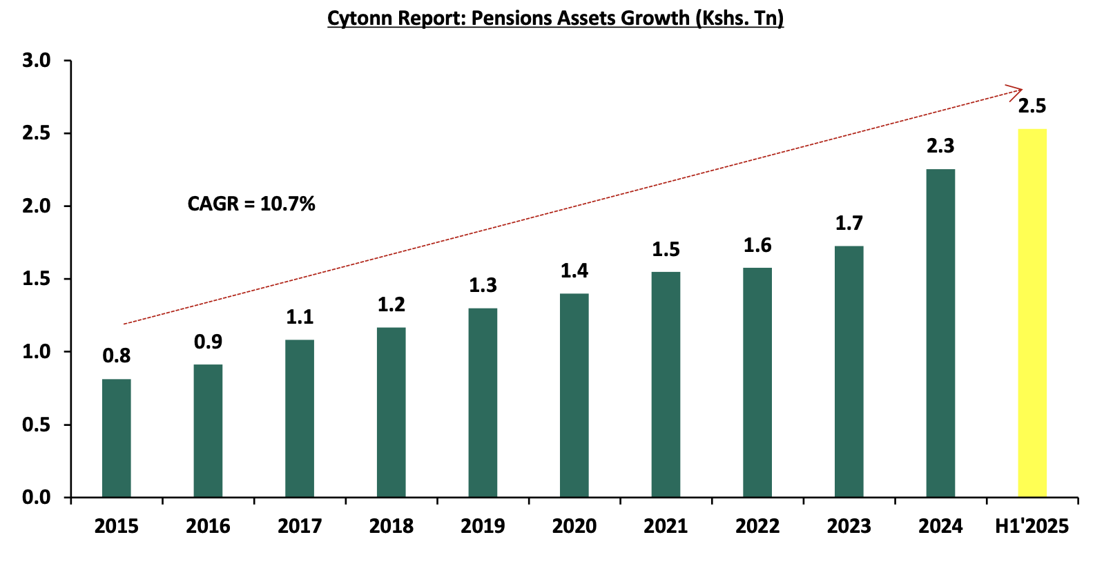 The retirement benefit scheme industry in Kenya has registered significant growth in the past 10 years with assets under management growing at a CAGR of 10.7% to Kshs 2.3 tn in FY’2024, from Kshs 0.8 tn in FY’2015. Notably, the AUM increased by 27.9% to Kshs 2.5 tn in June 2025 from the Kshs 2.0 tn recorded in June 2024. The growth is attributable to: