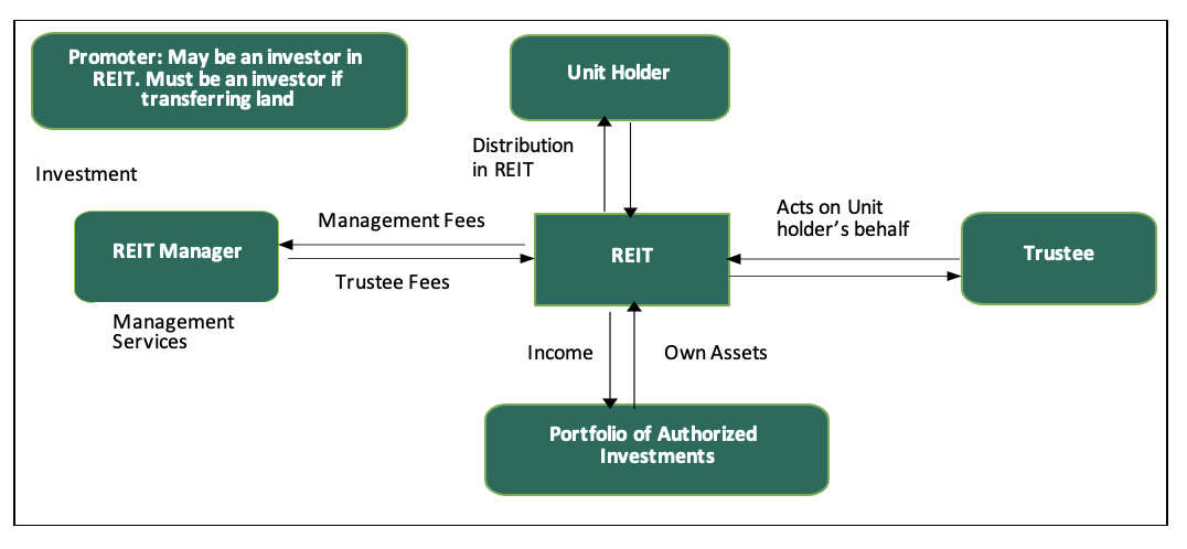 The relationship between key parties in a typical REIT structure is depicted in the figure below;